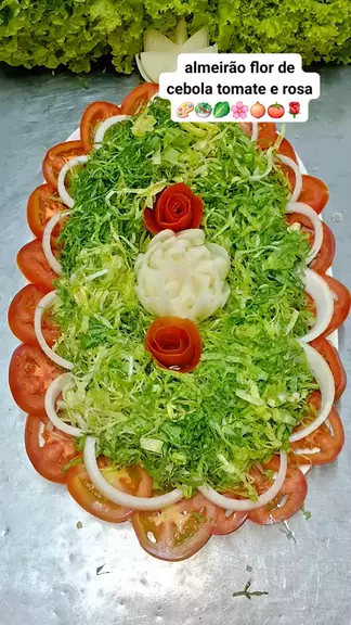 salada de alface com tomate flor de cebola e rosa de tomate