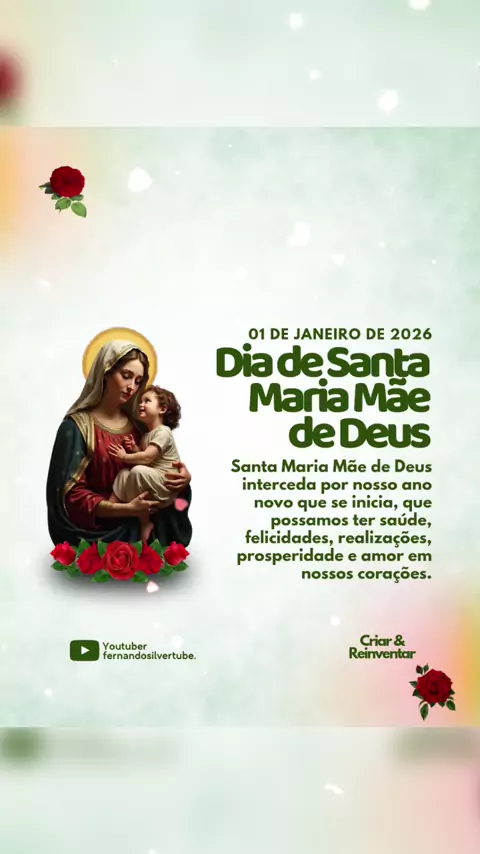 ✨ 01 de janeiro de 2026 • Dia de Santa Maria Mãe de Deus ✨ 🌹 Que neste início de ano, Santa Maria Mãe de Deus interceda por nossas vidas, abençoando nossos caminhos com saúde, paz e amor. 🙏 Que o novo ano traga felicidades, realizações e prosperidade, renovando a fé e enchendo nossos corações de esperança. #SantaMaria #MaeDeDeus #AnoNovo #Fe #Esperanca