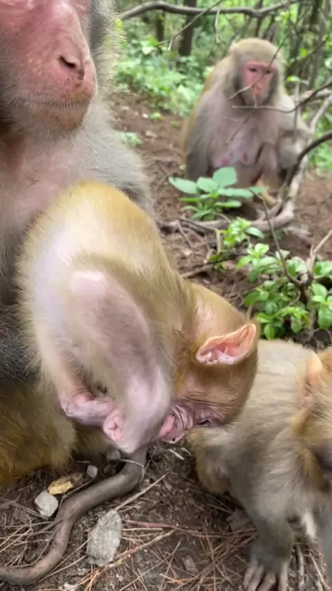 Monyet ini suka makan tangan.