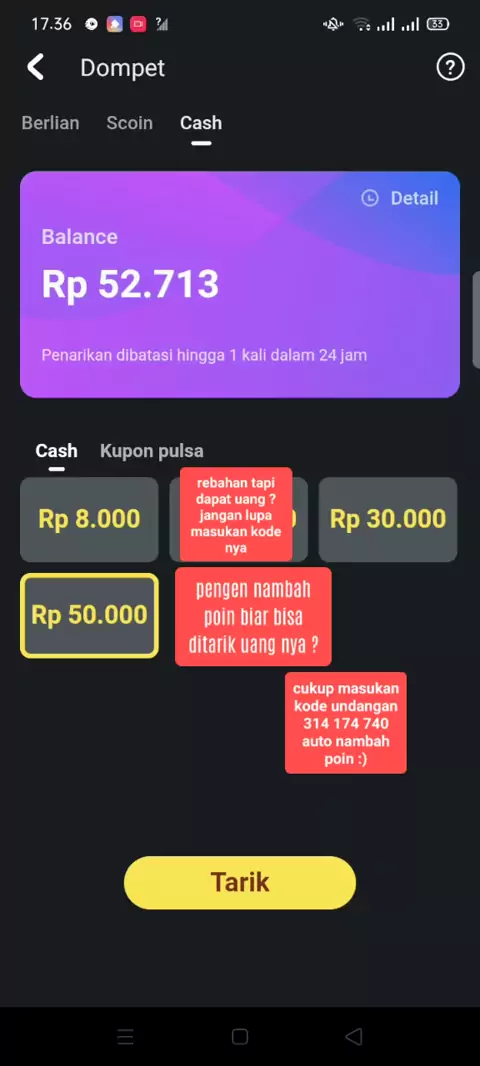 khusus pengguna baru dan belum masukin kode undangan ini kodenya 314 174 740 jangan lupa juga pake kode undagan tersebut biar nambah poin kalian :) salam cuan . #wdterus #rebahandapatuang #salamcuan #pekerjaanku #jalanyuk #Gasabaran #PaketAshiyap #snack_video_officiaI #PenghasilCuan #apkpengahasiluang #saldodana #KoinSnack #snackvideopenghasiluang #flf_fff_fl_fff_lf_4likeforlike #lflike