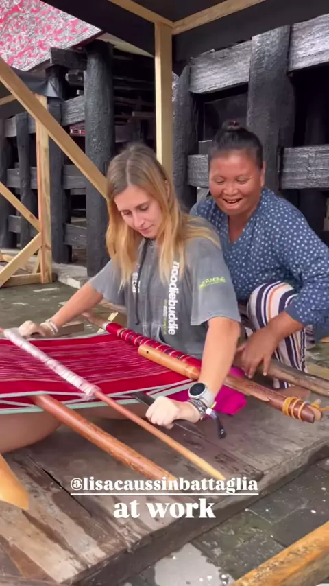 Memperkenalkan Budaya Batak ( menenun Ulos ) ke Rider Aquabike Jetski👍 Budaya Batak semakin Mendunia, Mantapppp, Horassss!!! 🎥 @aquabike_official #adventuresamosir #aquabikeworldchampionship #danautoba