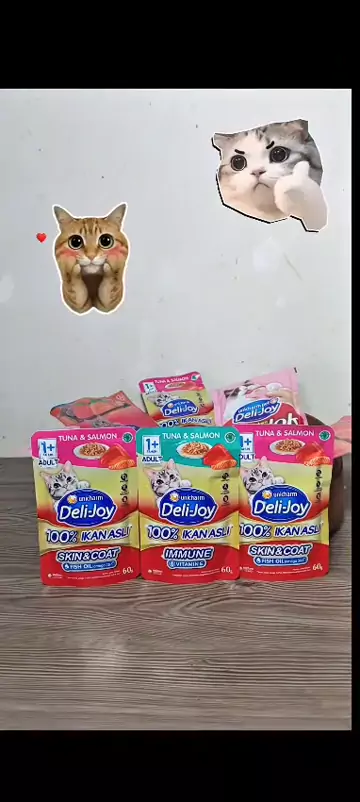 Si Anabul snacking Deli-Joy Immune rasa Tuna & Salmon dari ikan asli mengandung protein omega 3 & 6 miyak ikan bulu makin sehat lebat & glowing #UnicharmPet #PetIndonesia #CatLovers #UnicharmPet_ID [N]