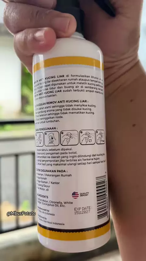 Cairan pengusir kucing liar ini tujuannya biar kucing liar gk spraying ya wei, kalo mrk dtg makan silahkan bebas all you can eat. Tp klo sdh disemprotin cairan ini mrk gk bakal spraying2 lagi di teras rumah #sprayantikucing #pengusirkucingliar #remov