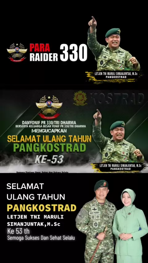 SELAMAT ULANG TAHUN PANGKOSTRAD LETJEN TNI MARULI SIMANJUNTAK,M.Sc., Ke 53. Semoga sukses dan sehat selaluš¤²#pararaider330#kostrad#tniad#divif1#HelloHongKong#jawabarat##trending#tentara#persitkartikachandrakirana#cicalengka#siliwangi#tniviral#pangkostrad#ulangtahun