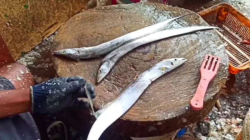 Super Fast RIBBON Fish Cutting in Knife 300 4 Per KG Amazing #cuttingfish #fish #fishing #mancing