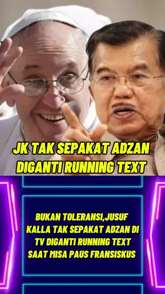 Bukan Toleransi,Jusuf Kalla Tak Sepakat Adzan Di TV Diganti Running Tex Saat Misa Paus Fransiskus #polemikadzan #jusufkalla #pausfransiskus