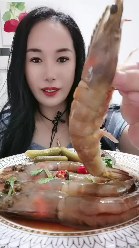 Sister sekalian, bukankah ini sedikit lebih awal? Haha, terima kasih atas dukungan Anda # Seafood Eating Broadcast # mentah tersedak udang punggung terbuka # @ Kai Shou Sales Assistant (O40300015)