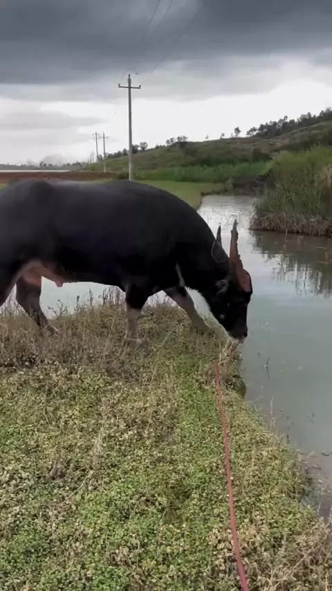 boi mergulhado na água muito top