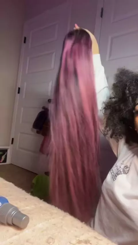 13x4 lace Black Hair With Purple Highlights straight wig 24 inch link in the bio @megalookhair