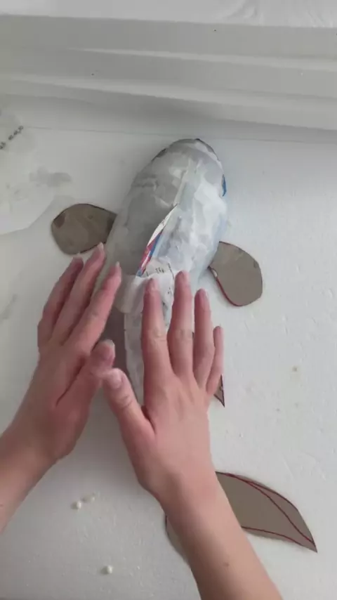 Thank you for all the love🫶 Follow for more!! This trend, but with coy fish☺️ . . .#cardboardshark#art#papermache#handmade#decor#ocean#fish#recycle#create#creator#artist#follow#painting#3dart#sculpting#thankyou#requested