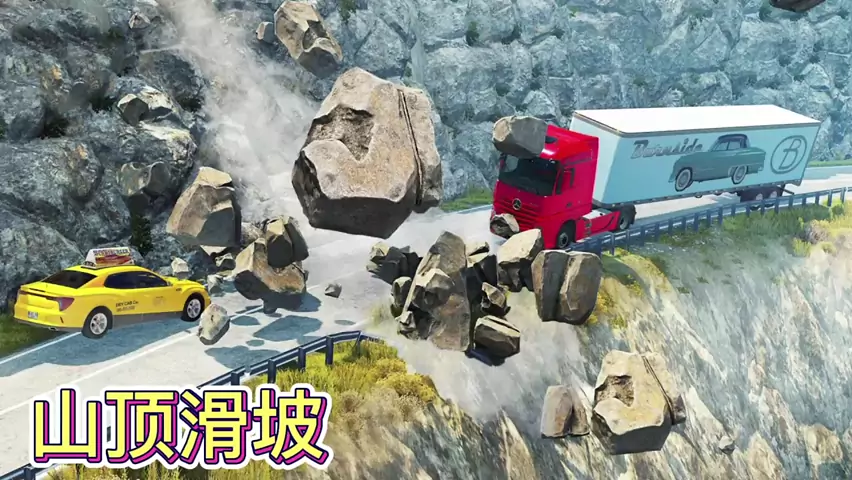Simulator kecelakaan mobil: Tanah longsor menghancurkan jalan-jalan pulau, dapatkah mobil lewat dengan aman? # Kecelakaan mobil simulator # Game # Animasi