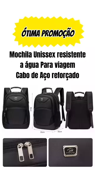 Mochila Unissex resistente a água Para viagem Cabo de Aço reforçado #mochilaunissex