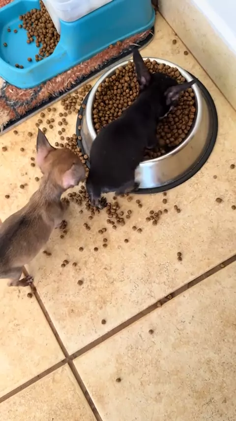 Pincher comendo ração
