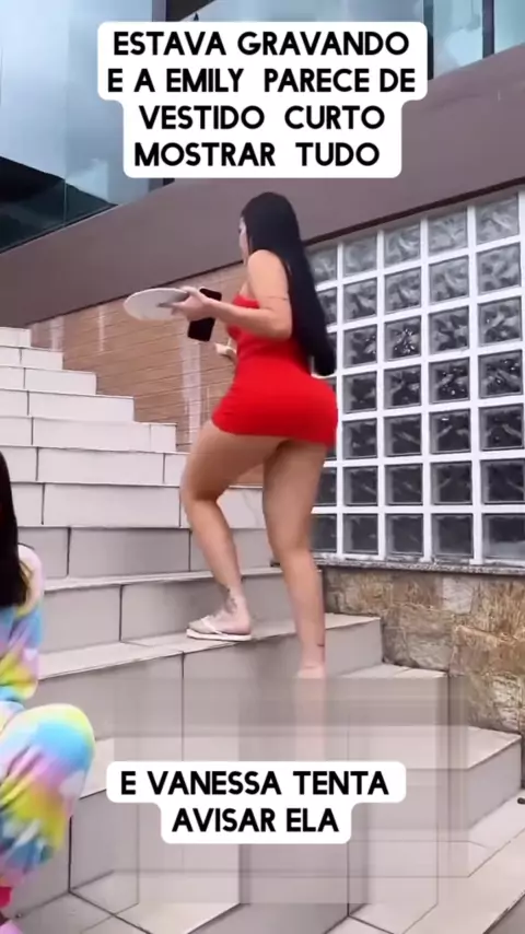 Emily sobe a escada de mini vestido #Choquei #Fofoca #BomPraKWAI
