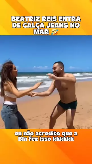 Beatriz entra de calça jeans na praia com Gil do vigor More