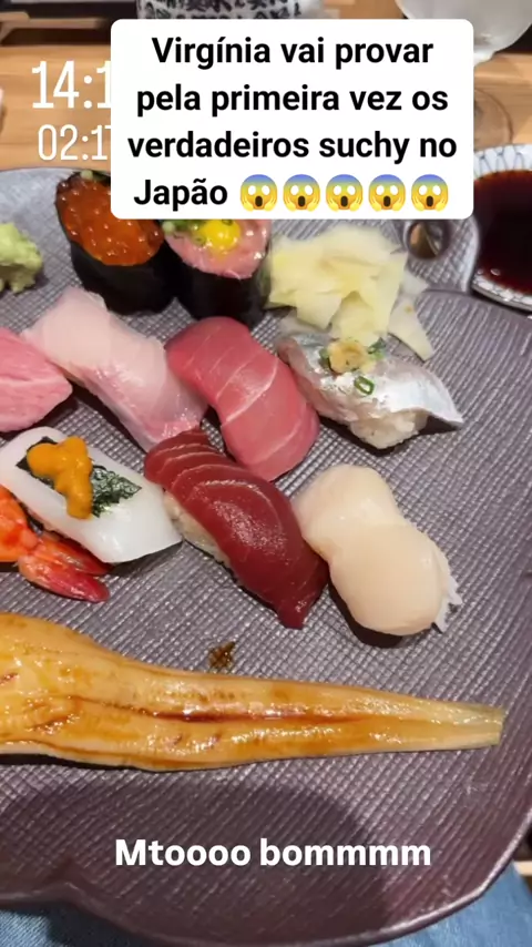 era simplesmente adorou o sushi 😱😱😱👏👏👏👏👏 #virginiaezefelipe😍