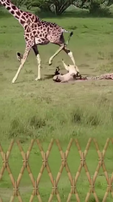 Girafa defende filhote. #animais