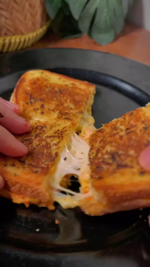 Sarapan pagi tadiš„ Bahan: -2 lembar roti tawar -1 sdm saus pedas -1 butir telur -keju mozarella Bahan olesan: -salted butter/margarin -bubuk oregano dan rosemary -bawang putih -lada bubuk#cheesetoast#garlicbread#garlicbutter#breadtoast#menusarapan