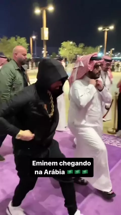 Eminem chegando em Evento na Arábia Saudita #desfile #Eminem #sheik #dubai