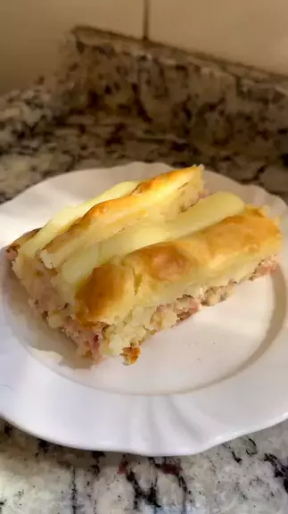 Torta salgada. Massa : 3 ovos 1 xícara de leite 3 colheres de manteiga ou margarina Queijo parmesão a gosto. 1 xícara de farinha de trigo 1 xícara de amido de milho Pitada de sal e um dente de alho. 1 colher de fermento em pó . Recheio 200g de presunto 200g de queijo 1 tomate 1 creme de leite