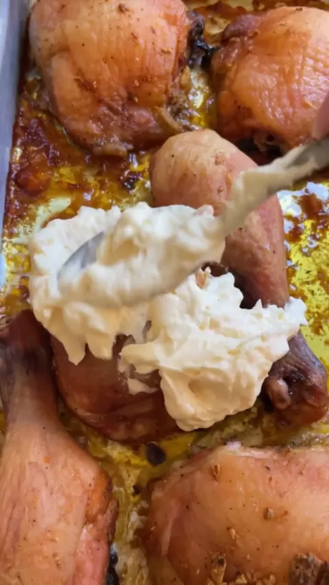 Frango assado com creme de alho.