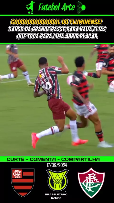 GOL DO FLUMINENSE! ganso da grande passe de calcanhar para Kauã Elias que invade a área e toca para Lima abrir o placar para o Fluminense contra o Flamengo #FlamengoxFluminense #Brasileirão #BrasileirãoSerieA #Esporteviral #TorcidaFlamengonoKwai