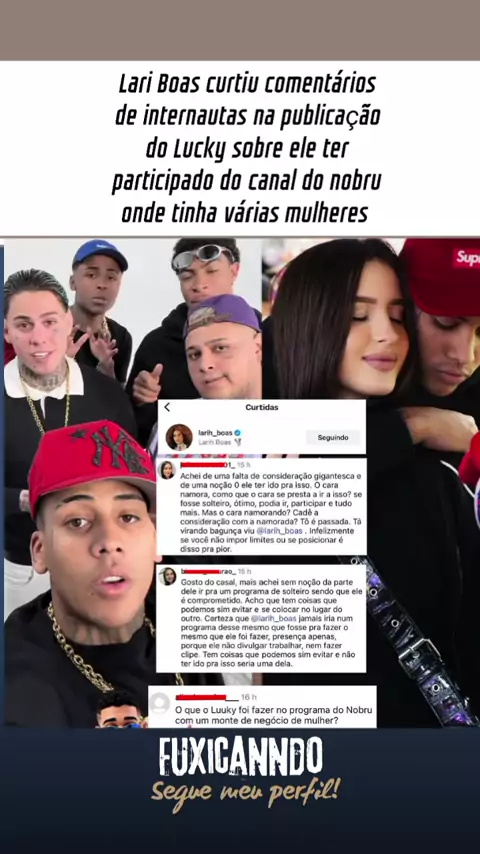 Lari Boas curtiu comentários de internautas na publicação do Lucky sobre ele ter participado do canal do nobru onde tinha várias mulheres #celebridades #amoreamor #ultimasnoticias #fofocadosfamosos #deferiascomoex