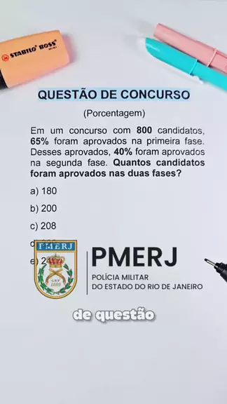🚨 QUESTÃO DE CONCURSO – PORCENTAGEM EM DUAS ETAPAS 🚨 800 candidatos… 65% passaram na primeira fase… E depois 40% desses passaram na segunda… Agora vem a pergunta que derruba muita gente: 👉 Quantos passaram nas duas fases? ⚠️ Cuidado: não é 65% + 40%. ⚠️ Não é porcentagem direta sobre 800 de novo. Essa é daquelas que exige atenção em cada etapa. 💬 Qual alternativa você marcaria? #PMERJ #RJ #policiamilitar #matematica #raciociniologico