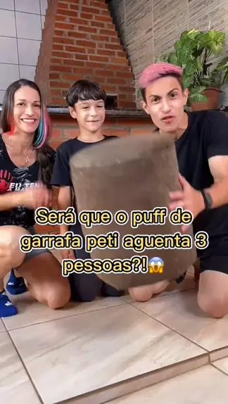 Será que o puff de garrafa pet aguenta 3 pessoas?!😱 #experimento #curiosidades #viral