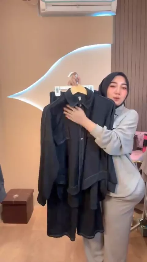 #ad ELIZA Setcel - Setelan Knit Panjang Wanita Remaja - Atasan Kancing Depan Celana Kulot - Setelan Nyaman