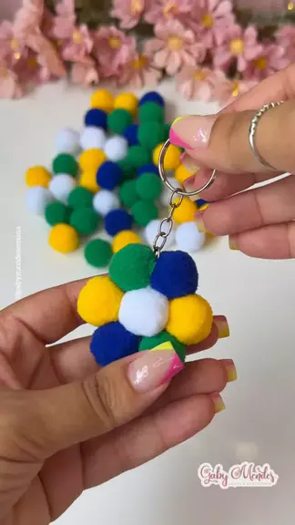 Mais uma inspiração para a copa do mundo 🇧🇷 Chaveiro de pompons⚽️ . . #diy #chaveirospersonalizados #copadomundo #Carnaval