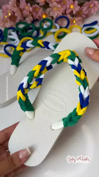 Mais uma inspiração de chinelo personalizado para o carnaval e copa🎊🇧🇷 . . #diy #Carnaval #chinelospersonalizados #copadomundo
