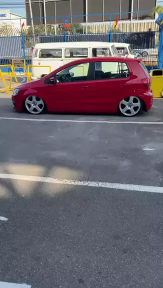 Volksvagen Fox vermelho rebaixado ar 18”. . . . . . . #foxrebaixado #navessocadas #foxvermelho #foxdarodagem #foxaro18