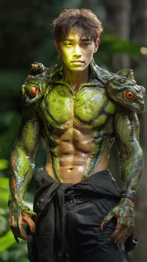 Human and Red-Eyed Tree Frog Fusion #pixverse #pixverseai #hybrid #morph #animalfusion #aiart #ai #transform #livewallpaper #aifusion