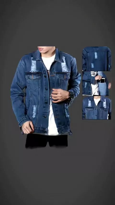 Jaket Jeans Pria Casual Lengan Panjang Keren Motif Sobek Cowok Distro#Jaket#jaketjeans#jaketkekinian#jeanspria#jaketmurah