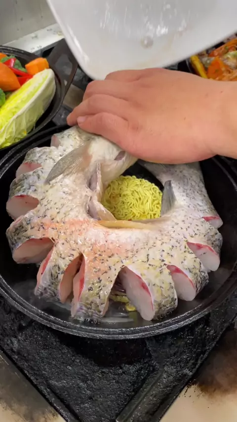 Foda-se peixe segurando flor de lótus, além de uma colher de sopa de segredo neste molho maneira, picante delicioso, a sopa é super - rico