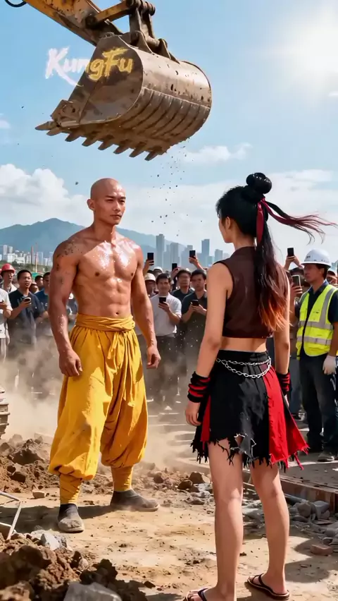 tirando mortal segurando numa escavadeira