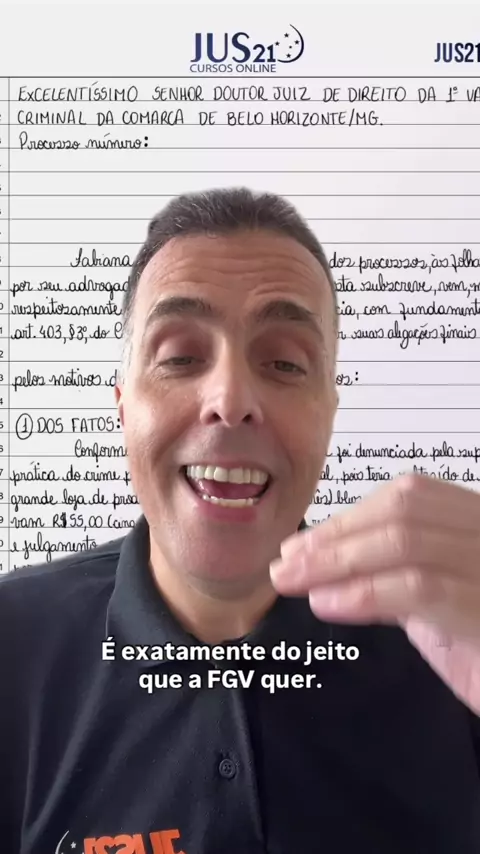 Ou você faz a peça exatamente como a FGV quer ou você terá dificuldade em ser aprovado na segunda fase penal da OAB. Venha comigo revisar as peças mais importantes ao longo desta semana. De 13 a 17 de outubro. 19h. Pelo canal do JUs21 no YouTube.