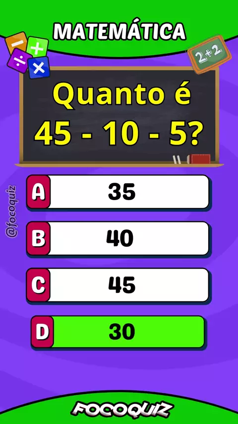 MATEMÁTICA SÓ OS MUITO INTELIGENTES ACERTAM, comenta aí se acertaram #QuizRápido #DesafioMental #TesteSeuCérebro #VocêSabeMesmo #QuizViral