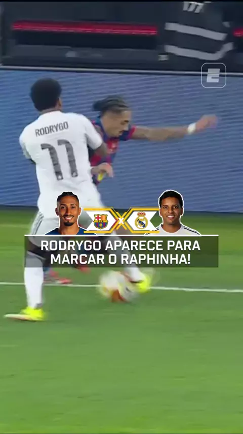 Rodrygo apareceu muito bem para marcar o Raphinha! Assista Γ Barcelona x Real Madrid, AO VIVO, pela ESPN no Plano Premium do #DisneyPlus. #SupercopaNaESPN #Raphinha #Rodrygo #Barcelona