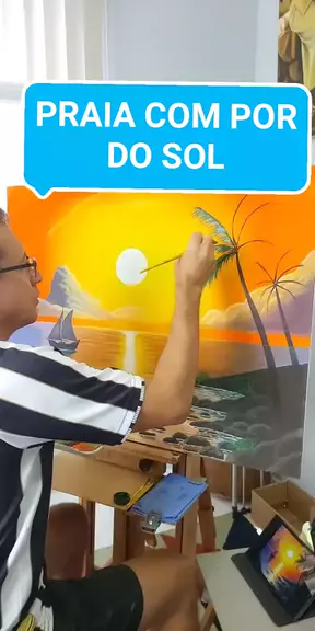PINTURA ACRÍLICA PRAIA COM POR DO SOL 50 X 70cm. #artsgildo #foryou #pinturaacrilica #paisagem #Pordosol