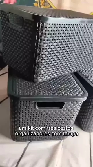 Kit Com 3 Cesto Caixa Organizadora Rattan Com Tampa 7 Litros
