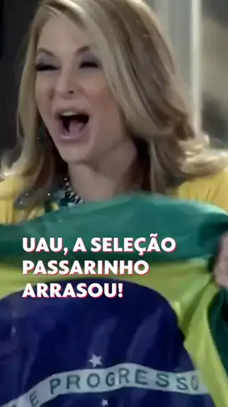 Só vem, hexa! 💚💛 Eu já me sinto pronto! #GeraçãoBrasil #PraTodosVerem: cena da novela Geração Brasil em que os personagens estão em uma sala de estar vestidos com roupas em verde e amarelo, com bandeirinhas e decorações do Brasil.