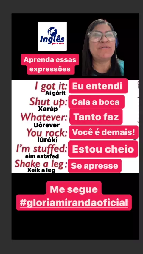 😊🇨🇦Vamos aprender inglês!! 😁🇱🇷 Aprenda essas expressões que você deve saber em inglês para assim ampliar seu vocabulário e se tornar fluente na língua inglesa! Para aprender fácil e rápido me segue #gloriamirandaoficial não deixa de curtir, comentar e compartilhar nossas dicas de inglês!!