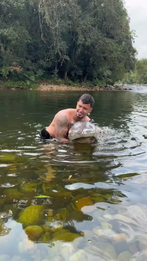 Peguei um jacaré gigante na lagoa