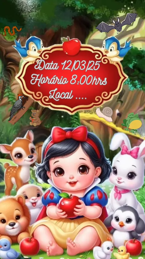 Convite de Aniversário Branca de Neve Baby em Formato de Vídeo com trecho de Música do tema. #conviteinfantil