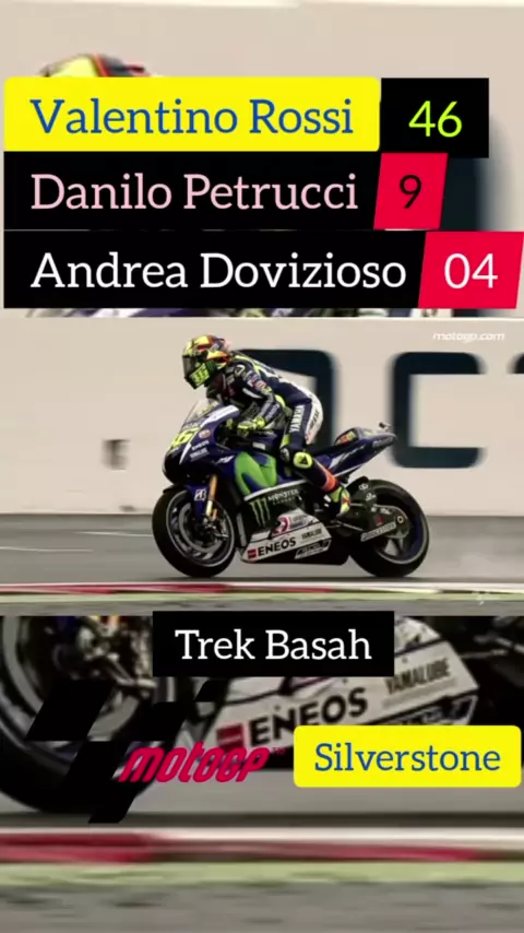 MotoGP 2015 di sirkuit Silverstone dimenangkan oleh Valentino Rossi. balapan yang hebat pada saat trek basah #ValentinoRossi #Snacksport #Trendsport #MotoGP