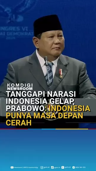 Tanggapi Narasi Indonesia Gelap, Prabowo: Indonesia Punya Masa Depan Cerah Presiden Prabowo Subianto menanggapi narasi "Indonesia Gelap" yang ramai diperbincangkan belakangan ini. Presiden menegaskan bahwa Indonesia memiliki masa depan yang cerah dan tidak berada dalam kondisi "gelap" seperti anggapan sejumlah pihak. Menurut Prabowo, Indonesia memiliki potensi yang sangat besar dan mampu melakukan penghematan di berbagai sektor untuk dialokasikan pada bidang-bidang yang lebih penting.