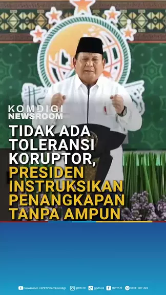 Presiden Republik Indonesia, Prabowo Subianto, menegaskan komitmennya untuk memberantas korupsi dengan tegas.  Dalam sebuah pernyataan, Ia menyebutkan bahwa kesempatan bagi para koruptor untuk bertaubat yang sebelumnya diberikan sudah berakhir. Tidak ada lagi toleransi atau jalan damai bagi para pelaku korupsi.  Presiden juga menginstruksikan agar KPK, Jaksa Agung, dan Kapolri bekerja sama untuk menangkap dan memproses hukum para koruptor tanpa ampun.  #tangkapkoruptor #PresidenPrabowo Lebih banyak