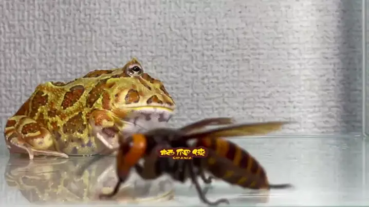 Katak bertanduk menelan lebah kepala harimau hidup-hidup, hanya untuk disengat oleh jarum ekor dan berteriak # Katak bertanduk # Lebah kepala harimau # Lucu